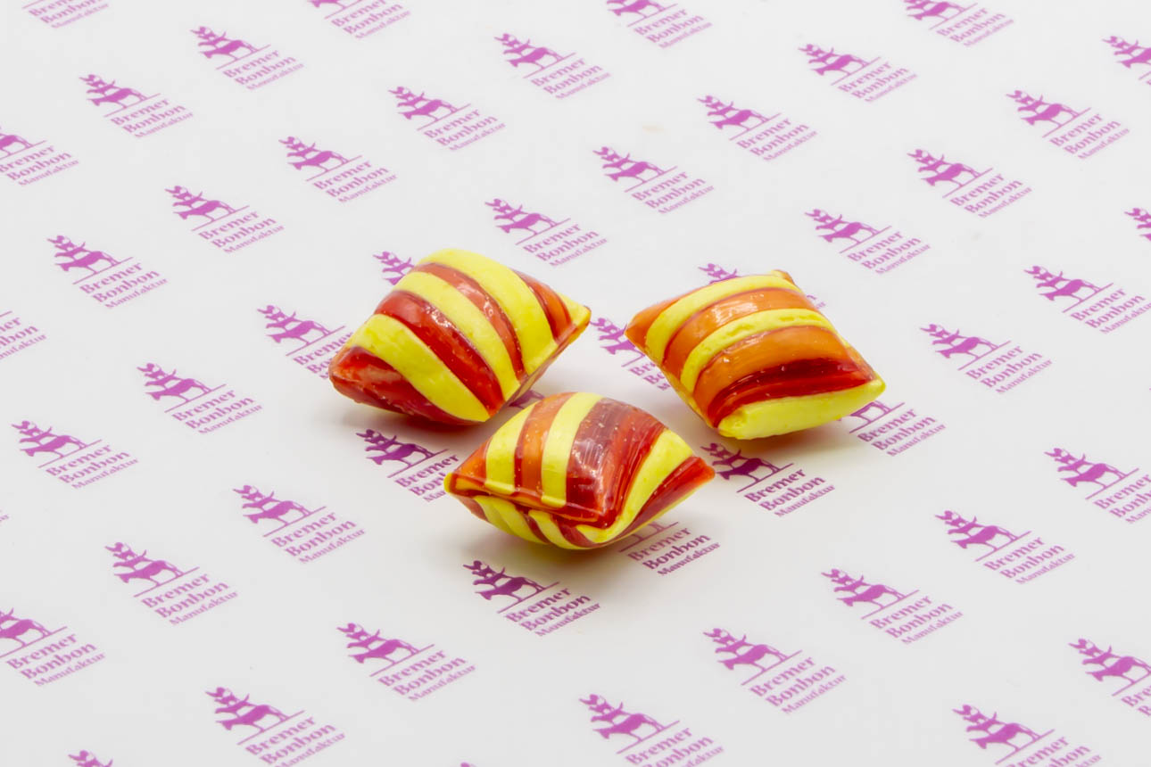 Zutaten: Zucker, Glucosesirup, Zitronensäure, Farbstoffe: Curcumin, Betenrot, Aroma, Weinsäure