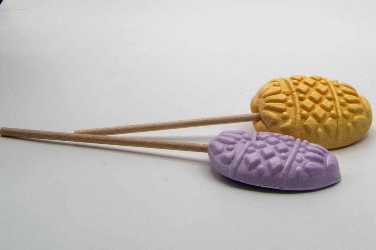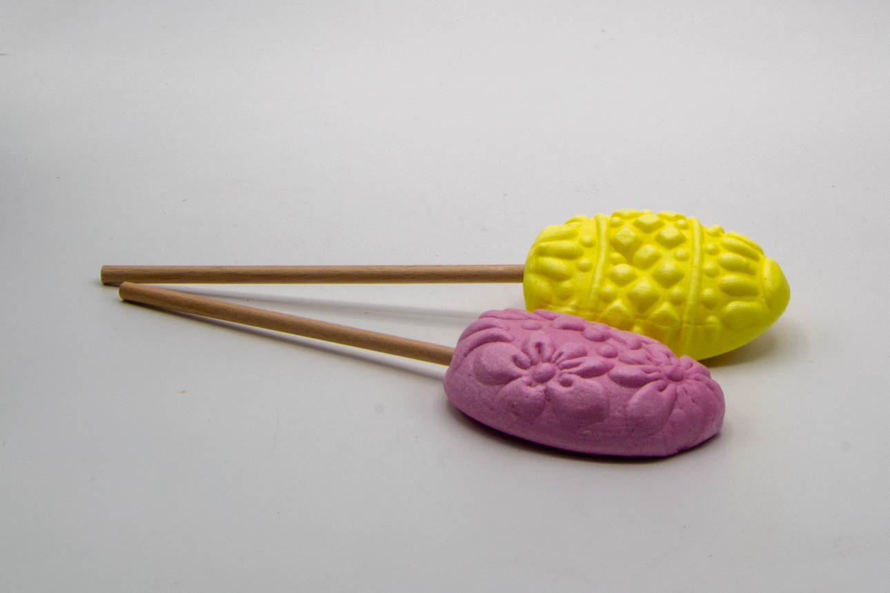 Dieses Osterfest wird bunt! Unsere liebevoll gestalteten Osterei-Lollies mit ihren filigranen Mustern und zarten Farben sind garantiert echte Hingucker in jedem Osterkörbchen. Sie sind in folgendne Geschmacksrichtungen erhältlich: Blaubeere (blau), Maracuja (gelb), Erdbeer-Sahne (rosa), Brombeere (lila), Sanddorn (orange), Mango (grün) und Holunderblüte (weiß).