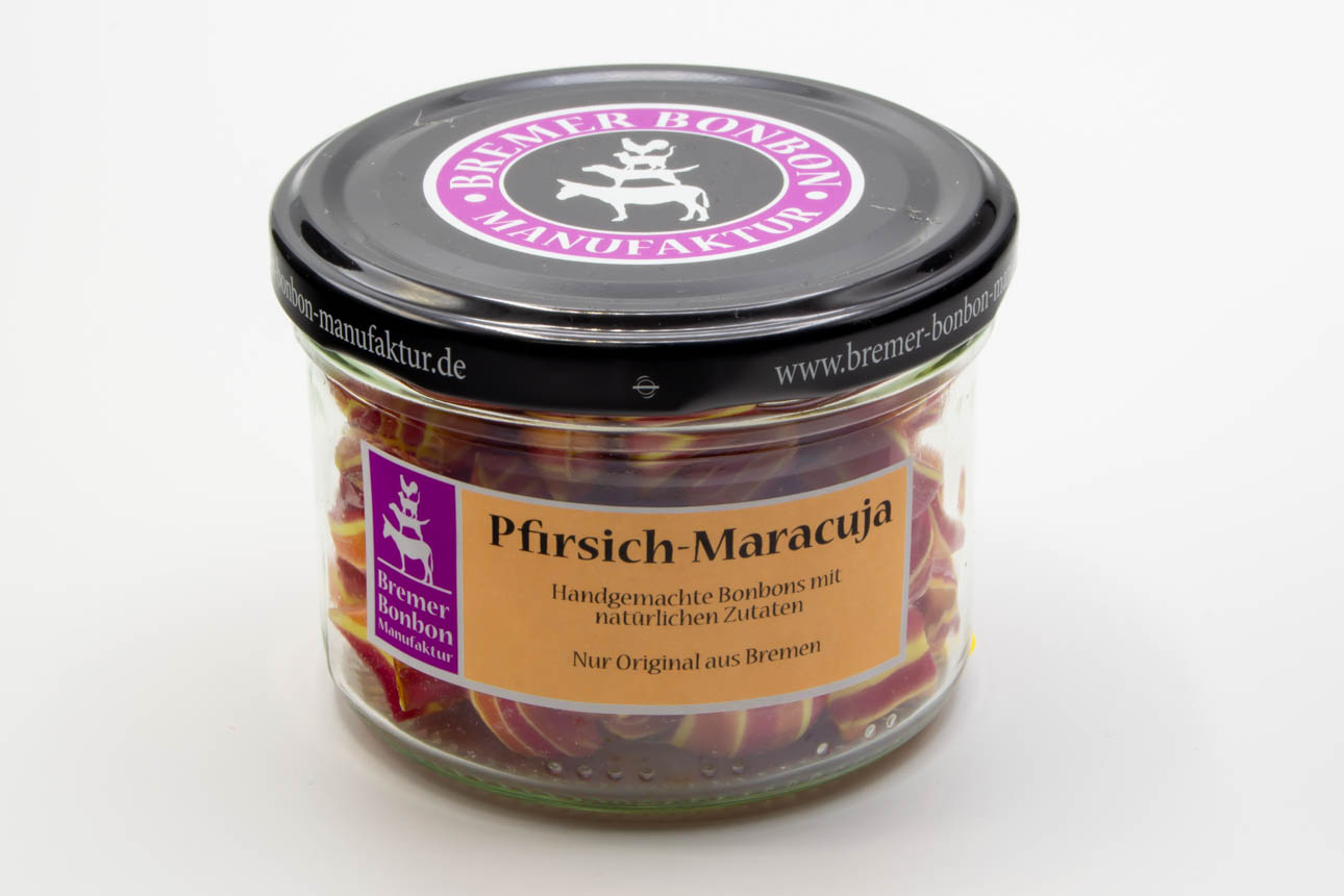 Ein Stück Sommer zum Naschen: süßer Pfirsich und tropisch-fruchtige Maracuja sorgen für pures Urlaubsfeeling in jedem Bonbon.