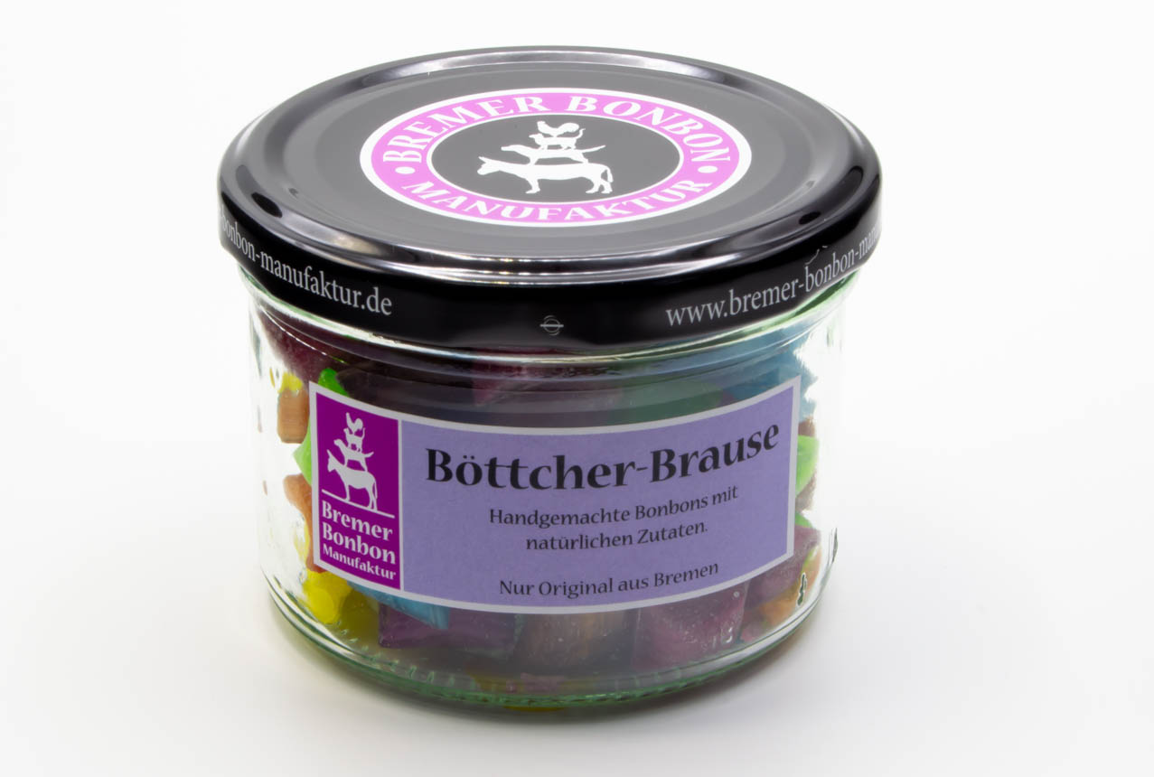 Achtung: Aufgrund der dünnen Zuckerschicht der Bonbons in Kombination mit der Brausefüllung kann es bei der Böttcher-Brause zu Bruch der Bonbons kommen, sodass sich am Boden des Glases Brausepulver und Bonbon-Stücke absetzen.